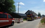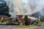 Bei dem Brandobjekt handelte es sich um ein kleineres Wohnhaus in Holzbauweise mit einem angrenzenden Schuppen. Das Feuer hatte bereits vor Eintreffen der Feuerwehrkräfte auf den Schuppen übergegriffen. Das Übergreifen auf andere Gebäude sowie auf den benachbarten Wald konnten die Einsatzkräfte jedoch verhindern. Der Brand wurde mit mehreren Rohren zunächst von außen bekämpft. Durch die Flammeneinwirkung stürzte das Dach ein. Für die eingesetzten Kräfte war dieser Einsatz, durch die hohen Temperaturen, sehr kräftezehrend. Die Wasserversorgung wurde über mehrere Leitungen sichergestellt. Vor Ort war ein Mitarbeiter des Stromversorgers, der die Leitung abschaltete. Das Gebäude, so der Einsatzleiter, konnte nicht gerettet werden: Haus wie Schuppen wurden vollständig zerstört.