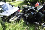 Zu einem schweren Verkehrsunfall auf der B 414 wurden mehrere Feuerwehren alarmiert. Zwei Fahrzeuge waren frontal auf einander geprallt. In einem Auto(Audi) wurde die Fahrerin (23) eingeklemmt und musste mit technischem Gerät befreit werden. In dem zweiten Fahrzeug befanden sich laut Polizei eine Mutter (40) mit Kind.