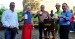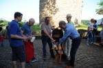 Burglahr. Das "Burgtaxi" ist erforderlich, um den Gästen den Weg zur Burg zu erleichtern. Die Straße, die hinaufführt, ist sehr schmal und daher nur in eine Richtung befahrbar. Die Gäste konnten am Fuße des Anstiegs parken und wurden dann hinaufchauffiert. Viele Besucher aus dem Ort kamen meist per Pedes zum Treffpunkt. Das Wetter war am Samstagabend (4. Juni) traumhaft und bot vom Festplatz aus eine faszinierende Sicht auf die Umgebung. Bereits vor dem offiziellen Beginn füllte sich der Platz mit fröhlichen und gut gelaunten Besuchern. Kurz nach 19 Uhr war es dann so weit - der traditionelle Fassanstich stand bevor. In diesem Jahr hatte der Bürgermeister der Verbandsgemeinde Altenirchen-Flammersfeld prominente Unterstützung. Neben dem Ortsbürgermeister von Burglahr Dieter Reifenhäuser waren dies sein Amtskollege aus dem benachbarten Peterslahr Michael Liedigk und der Bundestagsabgeordnete Erwin Rüddel.