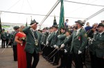 Als am Pfingstsonntag (5. Juni) der Festzug um 14 Uhr beginnen sollte, regnete es erheblich. Kurzerhand fiel der Zug aus und die Schützen marschierten in das große Festzelt ein. So blieben Kleider und Uniformen trocken - und die Stimmung konnte der Regen sowieso nicht trüben.