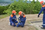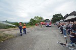 Auch der Feuerwehrnachwuchs stand im Mittelpunkt. Die Jugendfeuerwehr hatte für ihre Demonstration einen Flächenbrand angenommen: Das war die Ausgangssituation, um unter der Leitung von Jugendfeuerwehrwart Christoph Bähner Schläuche auszurollen und zu kuppeln. Mit vier Strahlrohren kümmerten sich die Mädchen und Jungen um die imaginären Flammen. Auch der Wasserwerfer wurde in Stellung gebracht. Die Besucherkinder hatten dann selbst die Gelegenheit, einmal den Schlauch mithalten zu dürfen.