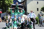 Auf dem Weg dorthin konnten sich die jüngsten Besucher schminken lassen oder das alte Karussell kennenlernen. Um 14 Uhr traten die Karnevalisten der KG „Fidele Jongen“ Pracht auf den Plan. Die Tänzerinnen und Tänzer der gemischten Gruppe zeigten bei großer Hitze ihr Können und erhielten den verdienten Applaus. Auf dem Platz vor dem Kulturhaus gab das Bläserchor Schöneberg ein Konzert. Auch diesen Musikerinnen und Musikern spendeten die Besucher großen Applaus. An vielen Ständen waren die Ideen von Raiffeisen Thema. So war am Stand von "Wäller Markt" immer viel zu tun. Auch Cornelia Obenauer, von der VG Altenkirchen, war mit dem großen Raiffeisen Spiel vertreten. Emilienne Markus Touristik Abteilung der VG Hamm zeigte den Besuchern, wie zu Raiffeisens Zeit Wäsche gewaschen wurde.