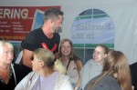 Der Sonntag stand dann im Zeichen des Marktgeschehens. Rund um das Festzelt wurden in den Straßen Stände aufgebaut. Die „Marktbeschicker“ kamen nicht nur aus dem Umland, sondern auch aus Nordrhein-Westfalen und dem Saarland. Leider war Petrus nicht gut gelaunt, regnete es doch immer mal wieder, was der Freude der Besucher und der Mudenbacher keinen Abbruch tat. Auf der mobilen Bühne am Feuerwehrgerätehaus gab es den ganzen Tag über Programm. Um 16 Uhr waren die Räuber für ein Pressegespräch zu Gast. Im Gespräch stellten die Künstler ihre Sicht auf die coronabedingten Absagen von Konzerten und anderen Veranstaltungen dar. Sven West, Frontmann der Räuber, stellte fest, dass ihnen wie allen anderen Künstlern auch der Applaus des Publikums gefehlt habe. Weiter gingen die Musiker darauf ein, dass durch die Veränderungen in der Band auch neue Einflüsse dazu gekommen seien. Die bekannten Titel der Räuber, so „Ur Räuber“ Kurt Feller und auch Sven West werden immer Bestandteil der Konzerte sein. Andreas Schrader stellte unter dem Applaus des Publikums fest, „Wir sind eigentlich die Kelly Family der kölschen Musik. Wenn man sieht, dass wir mehrere Generationen vertreten, passt das doch“. Eine besondere Freude machte die Band einer Besucherin, die Geburtstag hatte. Ein Happy Birthday von solch einer „Kultband“ kann nicht jeder vorweisen.