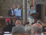 Von allen Seiten wurde gedanklich die ausgestreckte Hand hingehalten, und es zeigte sich um was es geht, was auch Weihbischof Peters herausstellte: "Es geht um den Mensch." Er stellte das Leitungsteam vor, mit Gemeindereferentin Wald und Dekan Jünemann. Letzterer sei mit Impulsen und Herzblut dabei. Düber habe Kompetenzen in der Verwaltung. Auch das Leitungsteam gebe dem Pastoralen Raum ein Gesicht, so der Weihbischof. Drei Schulterpaare würden mehr tragen, sechs Augen mehr sehen und drei Herzen mehr erwägen. Gemeinschaftlich Verantwortung zu übernehmen, daraus solle eine tragfähige Leitung erwachsen. Peters begrüßte es, dass unter anderem das "kommunale Leben" das Wort ergriffen habe. Zu den Menschen in der Kirche gewandt sagte seine Eminenz: "Danke, dass sie heute ihre Flagge hochhalten und bezeugen, da will ich dabei sein."