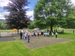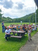 Alsdorf. Vorbei an der katholischen Kirche, durch den Wald im Imhäusertal, ging es weiter bis zum Zielort, den Grünerbacher Sportplatz. Dort konnten die Familien am großen Schwenkgrill, Steaks und Würsten grillen, und in gemütlicher Runde beisammensitzen und sich austauschen. Für kühle Getränke hatte die Kita auch gesorgt. Bei bestem Wetter und viel Sonnenschein, konnten die Kinder sich am angrenzenden Spielplatz austoben. Neben verschiedenen Spielen wie Eierlaufen und Dosenwerfen, gab es als Unterhaltungspunkt verschiedene Kindertänze, die von einer Kindergartenmutter angeboten wurden.