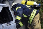 Walterschen. Ein gemeldeter PKW-Brand stellte sich beim Eintreffen der ersten Feuerwehrkräfte als Vollbrand heraus. Unter Atemschutz wurde die Brandbekämpfung aufgenommen. Zunächst setzten die Feuerwehrleute Wasser als Löschmittel ein. Im weiteren Verlauf wurde umgestellt auf Schaum, da die ersten Löschmaßnahmen nicht den erhofften Erfolg brachten. In den moderneren Fahrzeugen seien viele Kunststoffteile verbaut, die mit Wasser alleine nicht zu löschen sind, so der stellvertretende Wehrleiter Michael Imhäuser.