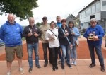 Zurück zum Vereinsplatz: Jedes Wochenende war eine Truppe auf dem Platz im Einsatz. Drainagen erneuern, neue Randsteine bodengleich setzen - die alten standen hoch - und schlussendlich die Tribüne auf ihre Fundamente bringen. Was hier zusammengefasst ist, das war eine harte Maloche über einen langen Zeitraum. Es wurde ein Schiedsrichterhäuschen aufgestellt und ein Blumenbeet angelegt und mit Stauden bepflanzt. Viel Eigenleistungen wurde aufgebracht. Und wie viel Schweiß geflossen ist, das ließ sich am Samstag, dem 9. Juli, nur erahnen. Was dabei entstanden ist, das lädt zum Staunen ein. Eine schmucke Sportanlage, die pünktlich zum Turnier der Ortsvereine bereitstand, damit erwachsene Frauen und Männer bei dem alten Kinderspiel Klickern den Besten unter sich ermitteln konnten.
