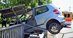 Unterstützt wurden die Feuerwehrleute durch die mit einem Feuerwehrmann besetzte Feuerwehreinsatzzentrale (FEZ), die im Gerätehaus untergebracht ist. Der Pkw "saß" so fest, dass weitere Maßnahmen seitens der Feuerwehr nicht erforderlich waren. Die verletzte Fahrerin wurde mit einem Rettungswagen in das Krankenhaus Altenkirchen gebracht. Ebenfalls an der Einsatzstelle war der Notarzt aus Altenkirchen. Im weiteren Verlauf wurde durch die Polizei die Straßenmeisterei informiert, da die Rohre des Gitters sowie die Schutzplanke entsorgt werden mussten. Das Auto wurde durch ein Abschleppunternehmen mit einem Kran geborgen und abtransportiert.