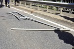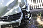 Bei dem Unfall wurden die Schutzplanke und ein dort befindliches Abgrenzungsgitter beschädigt. Der Pkw war offensichtlich nach rechts gegen den Bordstein gekommen und dann auf die Schutzplanke geraten. Die Fahrerin erlitt leichte Verletzungen. Die freiwillige Feuerwehr Hamm/Sieg , die mit rund 15 Kräften vor Ort war, stellte den Brandschutz sicher, klemmte die Batterie ab und unterstützte die Polizei bei den Absperrmaßnahmen.