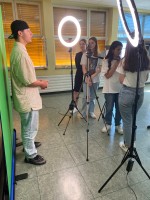 Zum Einstieg wurden den Schülern Videos gezeigt, um die Sensibilisierung für verschiedene Themen zu wecken und vor allem ganz klar zu zeigen, wie einfach es ist Videos zu manipulieren und mit ganz einfachen Mitteln etwas darzustellen, was nicht der Wahrheit entspricht. Nachrichten wurden aufbereitet, das freie Reden geübt, aber auch die passende Ausleuchtung und das Zusammenschneiden der Videos.