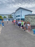 In den folgenden ersten gemeinsamen Schulstunden bastelten die Jüngsten Namensschilder, gestalteten Stofftaschen und brachen zu Rundgängen in und um die Schule auf. Im Freien fanden mit den Schulsozialarbeiterinnen Interaktionsspiele statt und so wurden die goldenen Regeln eines gelingenden Miteinanders nicht nur theoretisch besprochen, sondern gleich praktisch erprobt. Damit nach den Sommerferien in jeder Hinsicht reibungslos gestartet werden kann, erhielten die Fünftklässler Materiallisten.