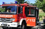 Aufgrund der Anrufe hatte die Leitstelle mit dem Stichwort "Flächenbrand groß" alarmiert und den Löschzug Morsbach (NRW) in den Einsatz eingebunden. Die Feuerwehrleute mussten sich der verständlicherweise sehr nervösen Bienen erwehren. Dies war mit einem Strahlrohr dann doch kein großes Problem. Während der Löscharbeiten am Bienenhaus trug der Trupp trotz der Hitze die komplette persönliche Schutzausrüstung und eine Atemschutzmaske mit Filter. Diesen Bereich hatten die Kräfte aus Morsbach übernommen.