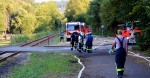 Zum Abschluss der Löscharbeiten wurde noch ein Schaumteppich über die schwarz gebrannte Fläche und die verkohlten Baumstümpfe und Äste gelegt. Ein Augenmerk lag auch auf der Fläche oberhalb des asphaltierten Weges. Ein Stichwort ist der Funkenflug. Vorsichtshalber wurde die Fläche ordentlich gewässert, um Funken, die sich vielleicht in dem Unterholz und Gestrüpp festgesetzt hatten, gleich auszumerzen.