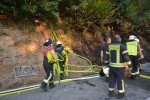 Den Wettlauf mit den Flammen hatten die Wehrleute am Dienstagnachmittag (16. August) in dem Steilhang gewonnen. Nun, zwei Stunden später, mussten sie erneut gegen offene Flammen kämpfen. Wieder oberhalb der L280 zwischen Alsdorf und Schutzbach. Bei der üblichen Kontrollfahrt am Abend hatte die Wehr Alsdorf erneute Feuer entdeckt.