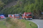 Gut zwei Stunden nach diesem Einsatz unternahmen Wehrleute des Löschzuges Alsdorf die übliche Kontrollfahrt. Und sie entdeckten dabei, dass es erneut in dem Hang brannte. Flammen schlugen hoch. Sofort wurde der Löschangriff eingeleitet. Erneut kletterten die Wehrleute über Steckleitern die steile Böschung an der Fahrbahn hoch in den Hang. Parallel wurden die Kameradinnen und Kameraden nachalarmiert, die aus den Wehren Betzdorf, Dauersberg und Grünebach herbeigeeilt kamen. Mit Schläuchen, Hacken und Schaufeln ging es wieder in das steil aufsteigende Gelände. Auf der erneut gesperrten Landesstraße wurde ein Pufferbecken aufgebaut. Das lief wieder aus den landwirtschaftlichen Güllefässern voll. Diesmal habe es fünf bis zehn Meter oberhalb der alten Brandstelle - die man nachmittags schon großflächig mit Netzmittel bedeckt habe - gebrannt, berichtete Einsatzleiter Niclas Brato, Wehrführer der Feuerwehr Betzdorf. Diesmal brannte es auch an einer der abgestorbenen Fichten. Schließlich konnte der betroffene Bereich auf rund 60 Quadratmeter gehalten und alles gelöscht werden. Direkt wurde der Bereich großflächig mit Netzmittel bedeckt, teilte Brato mit. Die Feuerwehr Grünebach war von oben an die Einsatzstelle herangefahren und bekam Wasser aus dem Betzdorfer Tanklöschfahrzeug. Schließlich wurde das Umfeld um die eigentliche Brandstelle noch großflächig gewässert. Präsent war auch wieder die Rotkreuzler der DRK-Bereitschaft Betzdorf.