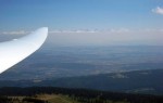 Wenige Tage später, am 3. August, flog Axel mit seiner Co-Pilotin in seiner ASH-25 motorlos bis in die Sächsische Schweiz und ins Tschechisch-Deutsche Grenzgebiet. In Höhen bis zu 2.900 Metern über NN in angenehm kühler Luft legten die beiden 848 Kilometer im neunstündigen Flug zurück.