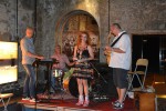 Das Team des Stöffelparks hatte in der "Alten Schmiede" eine schier unglaubliche Location für Tinas Abend "Poesie und Gedudel" geschaffen. Auf einer kleinen Extrabühne standen drei Musiker der bekannten Rockband "Some Songs", die als Intro die "Ode an die Freude" spielten und dann während des gesamten Poesieabends Tina ganz dezent mit leiser Hintergrundmusik begleiteten. Günter Weigel, Gitarre, Ralf Kortus, Keyboard, und Achim Wüst am Schlagzeug, improvisierten am laufenden Band, weil man einen Abend mit Tina nicht proben kann, die ebenfalls häufig improvisiert. Auf jeden Fall bestand zwischen der kleinen Band und Tina eine Art Seelenverwandtschaft, eine Symbiose, als wenn man Zeit seines Lebens nichts anderes geübt hätte.