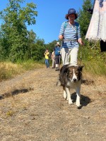Symbolisch wurde das Markierungsband des Deutschen Volkssportverbandes zur offiziellen Freigabe des frisch markierten Burgen-Rundwanderweges durchschnitten. Unter den allerersten Gästen waren 45 Wanderer und fünf Hunde in Begleitung von Michaela Stötzel, Kamil Holys und Nicole Reifenrath von den Wanderfreunden "Siegperle".