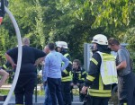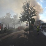 Im Gebäudeinneren sich einen Zugang bis auf den Spitzboden zu verschaffen, das mussten die Wehrleute nach dem Öffnen einer Speicherklappe aufgeben. „Auf dem Spitzboden war ein Feuer, und wir konnten schon nicht mehr hereinschauen“, schilderte Einsatzleiter Niclas Brato die Situation. Die Holztreppe, die gewöhnlich über die Klappe nach unten gelassen werden kann, war schon weitestgehend verbrannt, berichtete Brato und sprach von einem Vollbrand des verhältnismäßig niedrigen Dachstuhles.