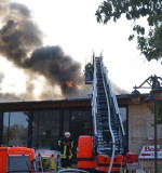 Es blieb den Wehrleuten nichts anderes übrig, als nur von oben über die Drehleiter sich Zugang zu dem Feuer zu verschaffen. Einreißhaken wurden eingesetzt, und Löschwasser aus Strahlrohren. Dunkler und schwarzer Rauch stand über dem Gebäude. Flammen schlugen immer wieder aus dem Dach hervor. Auch auf dem Vorplatz lag Rauch. Der Löschzug Kirchen wurde mit der Drehleiter und einem Tanklöschfahrzeug nachalarmiert, um so vor dem Gebäude von zwei Seiten an das Feuer heranzukommen. „Es hat schon gedauert, bis wir das Feuer unter Kontrolle hatten“, berichtete Brato. Für die Wehrleute gestaltete es sich, schwierig, an das Feuer heranzukommen. Deshalb musste das Dach mit den Einreißhaken geöffnet werden. So sei Luft durchgezogen und die Hitze herausgegangen, das habe geholfen, berichtete der stellvertretende Wehrleiter. Mit vereinten Kräften und guter Zusammenarbeit sei es schließlich gelungen, das Feuer unter Kontrolle zu bekommen.
