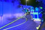 Horhausen. Der Anhänger brannte beim Eintreffen der ersten Kräfte im vorderen Bereich. Es bestand die Gefahr einer Brandausbreitung auf das Gebäude. Die ersten Atemschutzgeräteträger hatten sich bereits auf der Anfahrt ausgerüstet. Mit zwei Schnellangriffen aus den Löschfahrzeugen beider Einheiten gingen die Feuerwehrleute gegen das Feuer vor. Durch den schnellen, gezielten Löscheinsatz konnte ein Übergreifen der Flammen verhindert werden.