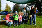 Gestartet wurde mit einem ganz besonderen Frühstück. Danach durchliefen die Igel-, Mäuse- und Maulwurfkinder jeweils verschiedene Stationen. Etwa beim Edelsteine aus dem Sand sieben, durchs Spinnennetz krabbeln oder Luftballons auf Zeitungen tragen hatten alle viel Spaß. Nach jeder gemeinsam gemeisterten Aufgabe erhielten die Kleinen ein kleines Geschenk, etwa einen Tier-Stempel, eine Tierfigur und einen kleinen Kristallaufkleber. Zuvor hatten sich alle ihr Schatzbeutelchen mit einer selbst gemalten und gebastelten Weltkarte geschmückt. Um die Gemeinschaft der Kita-Kinder deutlich auch nach außen zu zeigen, druckten alle Kinder nach den durchlaufenen Stationen ihre Handabdrücke auf die Außentür der Einrichtung in Katzwinkel.