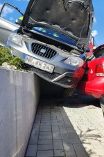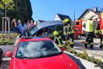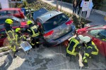 Horhausen. Beim Eintreffen der ersten Kräfte stellte sich die Lage wie folgt dar: Der Fahrer eines Seat Altea war von einem erhöhten Parkplatz aus über den Rand der begrenzenden Mauer gefahren und hing nun in Schieflage auf einem VW Golf. Die Fahrertür konnte nicht geöffnet werden, da diese an dem Golf anlag. Der Fahrer konnte daher das Fahrzeug nicht selbständig verlassen. Die erste Maßnahme der Feuerwehr galt der Stabilisierung des Unfallfahrzeuges. Danach schafften die Feuerwehrleute einen Zugang durch die Beifahrertür.