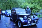 Hier gab es eine Kaffeepause und wieder die Gelegenheit, die Fahrzeuge zu besichtigen. Die Fahrer und Fahrerinnen gaben gerne Auskunft zu den „Schätzchen“. Trotz des immer mal niedergehenden Regens war den Teilnehmern der Spaß anzumerken. Die häufigste Aussage hierzu lautete „Wir können es nicht ändern. Dann müssen wir halt einmal mehr gründlich „wienern“. Das alles mit einem Schmunzeln im Gesicht. Nach der Pause ging es dann zurück zum Hotel Glockenspitze, wo die Oldtimer bereits erwartet wurden.