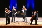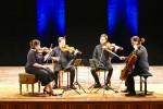 Nach der Pause betrat das Aris Quartett die Bühne, wobei einzig Lukas Sieber mit seinem Violoncello Platz nahm, während Anna-Katharina Wildermuth (Violine I), Noémie Zipperling (Violine II) und Caspar Vinzens (Viola) im Stehen spielten. Deren Darbietung wohnte eine Körperlichkeit inne, die schlichtweg ein erhebliches Maß an räumlicher Freiheit erforderlich machte. Die Komposition Erwin Schulhoffs aus dem Jahre 1923 stellte ein erhebliches Kontrastprogramm zu den anheimelnden Tönen Haydns dar.