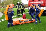 Das Einsatzstichwort lautete: B3 Brand mit Menschenrettung Einsatzlage: Mehrere vermisste Personen im Bereich der Tagespflege. Der Brand breitet sich auf die umliegende Vegetation aus. Die Jugendfeuerwehren (JF) rückten nach dem Alarm im zeitlichen Abstand an und wurden in die Aufgaben eingewiesen. Die JF Flammersfeld traf als erste ein und baute einen Löschangriff von außen und einen Innenangriff auf, bei dem auch die vermissten Personen zu suchen und zu retten waren. Hierbei trugen die vorgehenden Kräfte, wie die Aktiven auch, „Atemschutzgeräte“. Diese sind natürlich, wie Stefan Kremer erläuterte, den richtigen Geräten nachempfunden. Weitere Kräfte richteten eine Sammelstelle für die Verletzten ein.