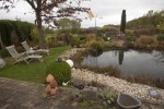 Der Garten geht in freies Feld über. Abgegrenzt wird er durch Bäume und Hecken mit unterschiedlichsten Gehölzen. Einen festen Zaun gibt es nur zum Teil. So berichtet Doris Krug, dass immer wieder Rehe zu ihr in den Garten kommen, was ein Genuss ist, den Tieren beim Äsen zuzuschauen. Der Nachteil ist, die Tiere wissen auch, was lecker schmeckt und so werden auch zum Beispiel die Knospen der Rosen an- und abgeknabbert. Weiterhin berichtet die Gartenbesitzerin von einer großen Vielfalt an Vögeln, die rund um das Jahr Gäste im Garten sind. Ein besonderes Highlight ist der Eisvogel, der gerne am Naturteich fischen geht. Er hat zwei besondere Ansitzstangen bekommen, die katzensicher sind.