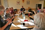 Die Grundvoraussetzung das Spielen zu erlernen sei: "Üben, üben, üben", so Hambsch. Die richtigen Finger zur richtigen Zeit bewegen, gleichzeitig darauf achten, dass der Spieldruck stimmt und konstant ist, dass immer genügend Luftvorrat im Sack ist, dazu noch im Takt bleiben, eine ganz schöne Herausforderung. Irgendwann klappt es automatisch und dann achten die Spieler nur noch auf die Trommler. Aus dem Grunde wurde erst einmal auf dem Practice Chanter, geübt. Das ist eine Übungsspielpfeife mit einem Doppelrohrblatt, also ohne Sack, die in Zimmerlautstärke ertönt. Ist das Instrument komplett, dann wird es richtig laut, weshalb alle Kursteilnehmer einen Gehörschutz tragen mussten.