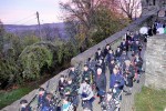 Die Teilnehmer des Trommel-Kurses unter der Leitung von Fabian Renz, Lehrer beim Kreismusikverband Bonn Rhein Sieg, hauten teils mit den Schlegeln auf den Tisch oder auf das Practice Pad, begleitet von Dudelsackklängen vom Band. Mit Sticks werden erstmal die Grundlagen, die sogenannten "Rudiments" gelernt. Rudiments sind Trommelfiguren, die später für das schottische Trommeln unerlässlich sind. "2-3-4-", zählte Renz und es klappte schon ganz gut, wenn teils auch das Tempo noch nicht ganz stimmet oder ein Teilnehmer noch nicht „vom Blatt spielen konnte. Eingeübt wurden anspruchsvolle Märsche und Tänze in unterschiedlichen Tempi. Die kamen dann beim Abschlusskonzert am Samstagabend um 17 Uhr im Innenhof der Freusburg, dem zahlreiche Zuhörer beiwohnten, zu Gehör.