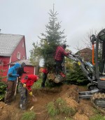 Nachdem der Bauhof der Stadt Kirchen zuvor das Loch am neuen Ort des kleinen Weihnachtsbaumes gegraben und Mutterboden bereitgestellt hatte, startete der Ortsbeirat jetzt zusammen mit Gärtnermeister Felix Schmidt die Umpflanzaktion. "Ein herzlicher Dank geht an dieser Stelle an Felix Schmidt“, sagte stellvertretender Ortsvorsteher Christian Baldus, "er hat uns in 2022 schon mal bei einer Pflanzaktion im Bereich der Sitzgruppe unterhalb der 1. Kreuzwegstation unterstützt“. An diesem Samstag rückte er wieder mit einem Minibagger und dem entsprechenden Transportmittel an. Nachdem der Baum gepflanzt war, wurde noch eine neue energiesparende LED Lichterkette installiert.