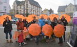 Hachenburg. Die UN hat den Tag als "Orange Day“ ausgerufen. Zum Zeichen der Solidarität mit den Opfern von Gewalt gegen Frauen werden weltweit Bauwerke in der Farbe Orange angestrahlt, denn Orange ist die Farbe der Wärme und des Lichts. Sie soll Hoffnung für alle Frauen und Mädchen symbolisieren, die heute noch erniedrigt, unterdrückt, gequält und misshandelt werden. Zu diesem Anlass kamen mehrere Frauenschutzorganisationen aus dem Westerwald in Hachenburg zusammen. Bange Blicke der Veranstalter richteten sich auf dem Wochenmarkt gen Himmel, da es zuvor ausgiebig geregnet hatte. Doch das Unglaubliche geschah, als die Infostände aufgebaut waren, hörte es auf zu regnen.