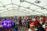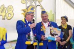 Den Auftakt machten natürlich die eigenen Kräfte der Burggrafen. Besonders bejubelt wurden die kleinsten Tänzer. Die Kinderprinzessin Maya (Schumacher) und Kinderprinz Florian (Melles) zeigten auch im Kleid und Ornat ihr Können. Die jüngeren, aber auch die großen, erhielten den Applaus der Gäste. Es folgte Stimmungsmusik pur – die „Gulasch Kapell“ spielte die bekannten Karnevalslieder in Perfektion. Daran schlossen sich die Auftritte der Gastvereine an. Die weiteste Anreise hatten die Karnevalisten aus Kevelaer. Alle Vereine verabschiedete sich von „Bubi“ Noll. Holger Becker, ehemaliger Vorsitzender, übergab als Geschenk eine aufblasbare Sitzgelegenheit. „Du hast immer gesagt, manches Mal wäre ich lieber auf der Couch geblieben“, so Becker. "Deshalb haben wir dir dieses praktische Utensil besorgt." Sichtlich bewegt nahm der scheidende Präsident die Geschenke der befreundeten Vereine entgegen.