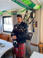 Nach dem Gottesdienst zog die Karnevalsgesellschaft unter der passenden musikalischen Begleitung des Great Highland Bagpipes ("Die Karawane zieht weiter") in das Vereinslokal "Am Dorfplatz" in Pracht, wo der karnevalistische Frühschoppen stattfand.