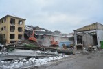 Wolfgang Schulz hat sich bereits eine Rampe aus Bauschutt gebaut. Von dieser Erhöhung aus kommt er mit dem Greifer seines Baggers bis hoch ans Dach. So ist es auch nur noch eine Frage von Zeit, bis auch dieses Gebäude dem Erdboden gleichgemacht ist.