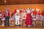 Nach dem formellen Teil der Amtseinführung nahmen die Majestäten Platz, flankiert von ihrem Gefolge, um dem zu ihren Ehren vorgeführten Programm zu folgen. Wie jedes Jahr waren die Zuschauer aufs Neue entzückt von den ganz Kleinen, den Elger Fünkchen. die den Mut aufbrachten vor einem so großen Publikum auf die Bühne zu gehen. Da verzieh das Publikum auch schon mal, wenn nicht alles hundertprozentig synchron ablief.