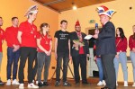 Wie schnell aber auch ein Programm durcheinandergebracht werden kann, das zeigte sich als ein Funkemariechen verriet, der Papa habe heute Geburtstag. Der seit Samstag 31-Jährige, leicht geschockte Philip Kutsch wurde auf die Bühne geholt, hatte zur Verstärkung seinen Sohn auf dem Arm und musste sich ein Ständchen zu seinen Ehren anhören. Anschließend durfte er erleichtert - ohne zu befürchtende Saalrunde - seinen Platz wieder einnehmen. Nach der kurzfristigen außerplanmäßigen Einlage bekam Prinz Marco unter dem Jubel der Anwesenden den monströsen Schlüssel zum Elger Karneval aus den Händen des Bürgermeisters, ehe es im abwechslungsreichen Programm mit Kinder-Duo, großem Hofballet und Funkenvereidigung bis zum Finale in bester Stimmung weiterging.