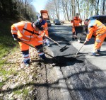 Dauersberg/Elben/Steineroth. Die K 107 zwischen dem Umspannwerk an der Steinerother Straße und dem Betzdorfer Stadtteil Dauersberg ist keine offizielle Umleitung für die in einem Abschnitt in Steineroth gesperrte L 288. Aber seit der Sperrung - aus Richtung Umspannwerk bis zur Einmündung der L 281 in der Ortsmitte von Steineroth - fahren täglich bis zu 9.000 Fahrzeuge über die Kreisstraße. Die nicht frostsicher ausgebaute Straße hat massiv gelitten - unter der starken Belastung der Fahrzeuge und gepaart mit den Wetterunbillen, bei denen sich in den vergangenen Wochen Frost- und Auftauphasen ein Wechselspiel lieferten. Entlang der Kreisstraße gibt es massive Schlaglöcher - noch. Denn diese werden nun mit einem Heißmischgut, also Asphalt, zugestopft. Jetzt, in den Osterferien, ist die Gelegenheit, um zumindest die gröbsten Schäden zu beseitigen. Denn in diesen Tagen gibt es keinen Schulbusverkehr, der bekanntlich die K 107 offiziell befahren darf.