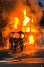 Hümmerich. Die Teileinheit des Gefahrstoffzuges des Landkreises, die in Horhausen stationiert ist, wurde ebenfalls zur Einsatzstelle entsandt. Der Lkw-Fahrer konnte sein Fahrzeug noch bis zur Einfahrt des Rastplatzes Epgert fahren. Dort verließ er unverletzt sein Gefährt. Die Einsatzstelle ist den Feuerwehren durch viele Einsätze bekannt. Durch das Ausmaß des Feuers war klar, dass die Wasserversorgung an der Einsatzstelle nicht ausreichen würde. Die Einsatzleitung forderte weitere Tanklöschfahrzeuge aus den Verbandsgemeinden Puderbach und Rengsdorf-Waldbreitbach an.