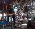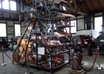 Es wurde gezeichnet, probiert, getüftelt und schon bald kam man zu dem Schluss: Wir bauen ein Riesenrad. Sicher eine ungewöhnliche Form, auf die Modelle aufmerksam zu machen, aber das 3,50 Meter hohe Gestell mit den acht Gondeln hat schon was für sich. Und auch schnell einen Namen weg: Modelldampfmaschinenpräsentationsriesenrad. Mithilfe der Firmen Stahlbau Krämer in Mudersbach, Schrauben Wurth in Niederfischbach und Kröna in Kreuztal sowie Markus Senf, der alle Nähte schweißte, gelang es den Aktiven des Museums in relativ kurzer Zeit, ein einmaliges Präsentationsriesenrad zu bauen.
