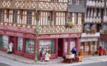 Gebäude und Straßenszenen sind die Spezialität von Rainer Petruck. In seinen Dioramen setzt er Häuser in eine Landschaft und ergänzt sie zusätzlich mit Figuren oder Fahrzeugen. "Es sollen Bilder aus dem Leben entstehen", sagt er. Einem historischen Häuserblock aus der französischen Stadt Lisieux widmete er 18 Monate Bauzeit und lässt nun den Fachwerk-Flair des Normandie-Ortes erahnen.