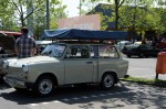 Sonja Eitelborn war mit ihrer NSU Quickly erschienen. Sie ist treue Teilnehmerin an der Raiffeisen Veteranenfahrt und zeigt gerne ihr Gefährt, das sie schon fast überall hingebracht hat. Neben der Quickly gab es, wer kennt sie nicht, auch die Kreidler Florett zu bestaunen. Ein besonderes Interesse weckt immer der Trabant. Dieses fast unverwüstliche Auto weckt bei einigen Besuchern Erinnerungen und regt zum technischen Fachsimpeln an. So war auch ein Trabant Kombi mit der legendären "Sachsenruh“ (Dachzelt) zu sehen.