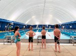 Vormittags startete der Wettkampf mit den Einzelmeisterschaften der Altersklasse (AK) 15/16, 17/18 und Offen. An den Start gingen Adrian Nöttgen (AK 15/16), Max Krusche (Ak 17/18) und Jerome Osterkamp (AK offen). Jerome beendete den Wettkampf erfolgreich mit einem sehr guten 3. Platz, es trennte ihn nur ein halber Punkt von Platz 2. Max (13. Platz) und Adrian (5. Platz) schwammen auf der ungewohnten 50-Meter-Bahn in allen drei Disziplinen persönliche Bestzeiten.