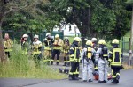 Zum Gefahrstoffzug des Kreises gehören, neben dem Einsatzleitwagen 2, in Wissen stationiert, auch Fahrzeuge, die zur Dekontamination von Personen notwendiges Material zur Einsatzstelle bringen. Die Dekontamination wird bei Betroffenen wie auch bei Einsatzkräften durchgeführt, um eine Verschleppung von Schadstoffen auszuschließen. Die Einsatzkräfte der freiwilligen Feuerwehr Pleckhausen bauten sofort nach dem Eintreffen und der ersten Erkundung eine Wasserversorgung auf und stellten den Brandschutz sicher.