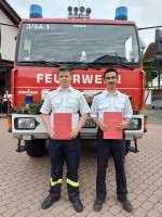 Verpflichtet für den aktiven Feuerwehrdienst und zum Feuerwehrmannanwärter ernannt wurde Ben Rosenkranz. Jonathan Trippler ist nach bestandenem Truppführerlehrgang zum Hauptfeuerwehrmann befördert worden. Aufgrund ihrer Dienstzeit wurden Jens Walleit (Löschmeister) und Gerd Johannes (Hauptlöschmeister) befördert. Beide waren verhindert.