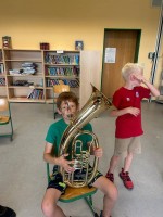 Spannend und historisch zugleich wurde es bei den Präsentationen des Dorfgemeinschaftsvereins. Alte Wählscheibentelefonie kamen den Kindern wie Steinzeitgeräte vor und den Geschichten rund um die Grubenvergangenheit wurde gespannt gelauscht. Ein Instrumentenkarussell zum Ausprobieren hatte die Bergkapelle aufgebaut. Laute und leise Töne wurden den vielen Instrumenten beim Ausprobieren entlockt. Dabei kam so manches musikalische Talent zutage.