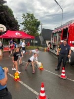 Begeisterung machte sich breit, als die freiwillige Feuerwehr Katzwinkel ihr neues Löschfahrzeug HLF 10 präsentierte und mit Wasserspielen aufwartete. Der Förderverein der freiwilligen Feuerwehr überraschte mit leckerem Eis, was bei den sommerlichen Temperaturen bestens ankam. Und auch der TuS Katzwinkel präsentierte seine Abteilungen Fußball und Tischtennis in der Glück-Auf-Halle. Fußballparcours und verschiedenen Torschussübungen brachten genauso viel Spaß wie Tischtennisspiele.